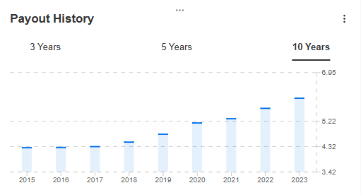 MPLX a déjà fait preuve d’une stabilité impressionnante, avec une croissance modérée des bénéfices et des fluctuations minimes au cours des dernières années. Le rendement du dividende de 7,57 % et le ratio de distribution de 80 % font de MPLX un choix solide pour les investisseurs en revenus.