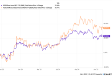 Foreign shares in developed markets continue to post a wide lead over the rest of the field. Vanguard FTSE Developed Markets ETF (NYSE:VEA) has rallied 7.2% so far this year. Emerging markets stocks (VWO) are in second place, rising 5.4%, followed by commodities (GCC) in third place at 4.9%. US stocks (VTI), meanwhile, have fallen toward the back of the line with a relatively modest 2.1% gain.