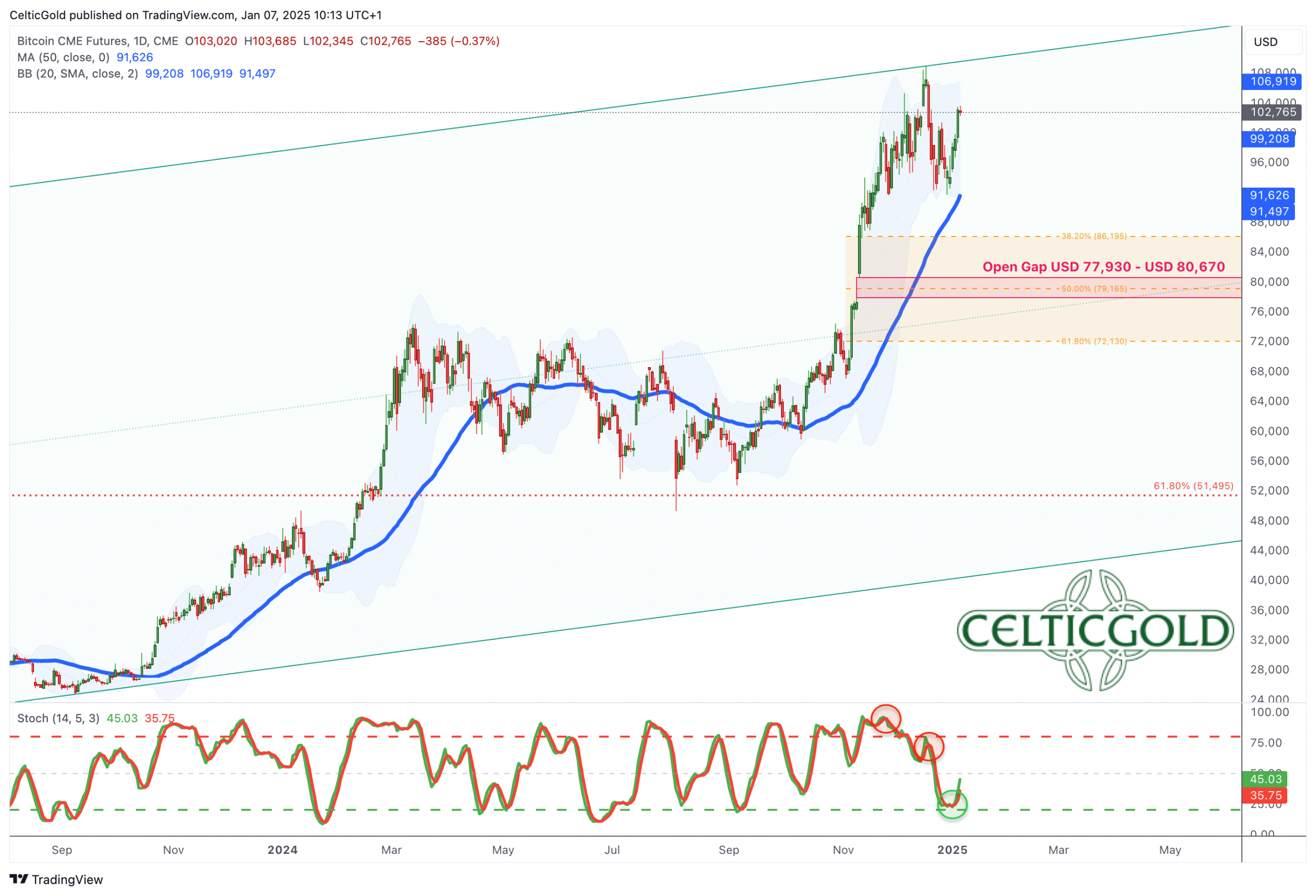 Bitcoin Future in USD, weekly chart as of January 7th, 2025. Source: Tradingview