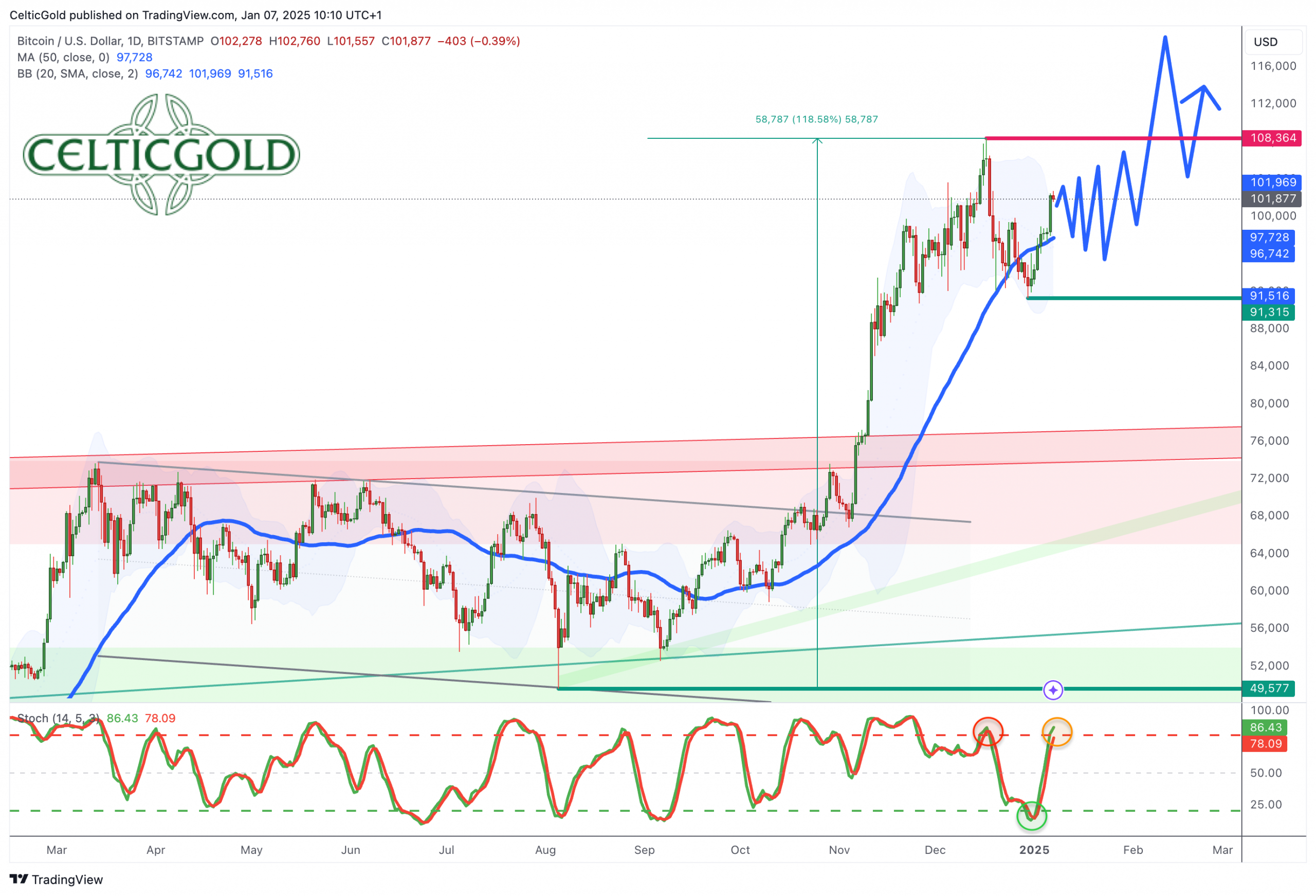 Correspondingly, the start of 2025 has brought renewed optimism to the crypto market. Bitcoin bulls have regained control, pushing the price back above the psychologically important USD 100,000 mark. As of January 7, 2025, Bitcoin is trading at approximately USD 101,835, demonstrating a strong recovery from its year-end lows.