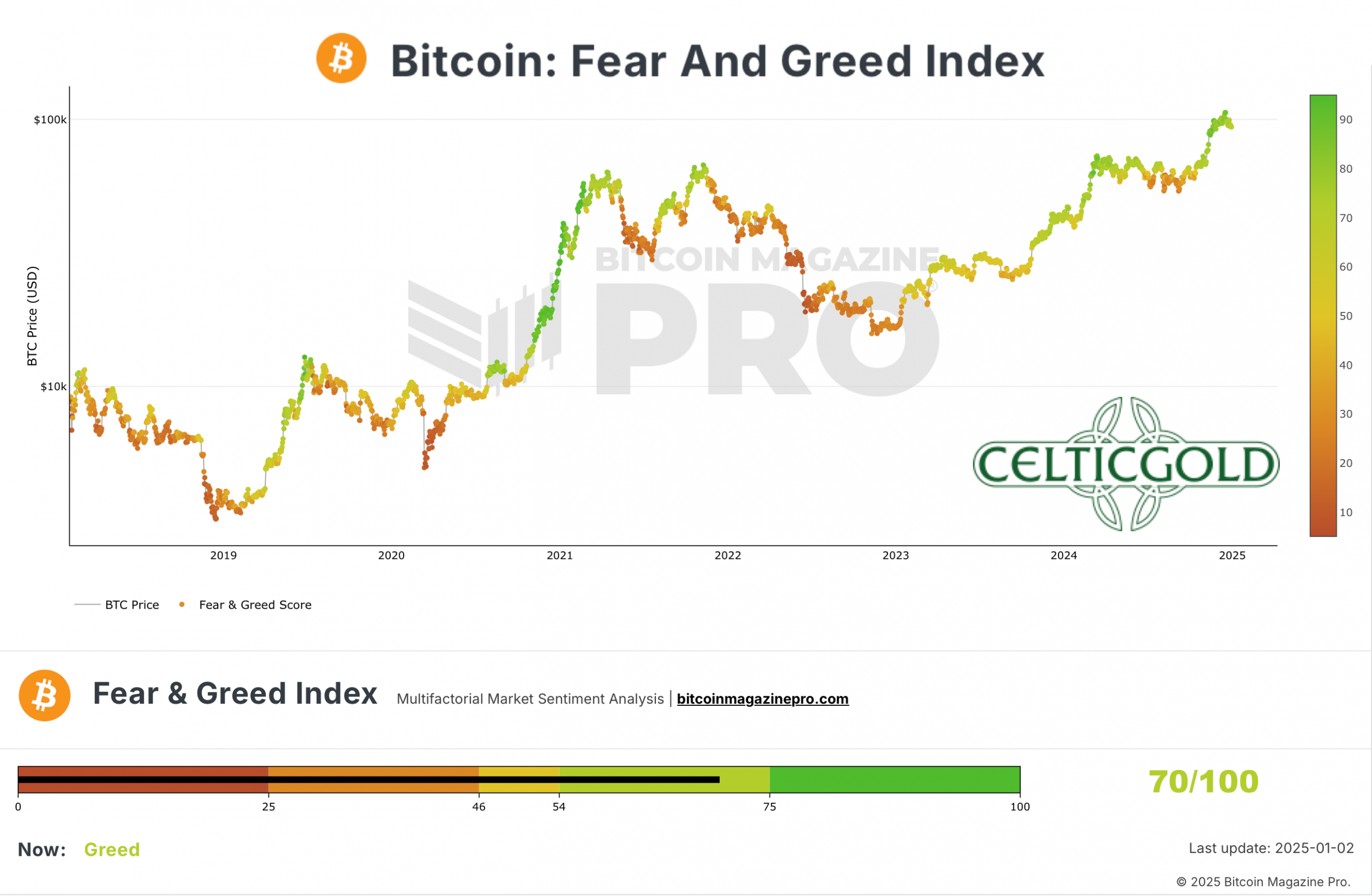 Crypto Fear & Greed Index, as of January 2nd, 2025. Source: Bitcoin Magazine Pro.
