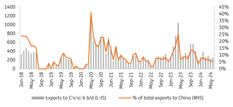 Une plus petite partie des exportations américaines de pétrole brut aboutit en Chine