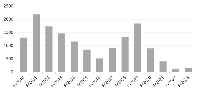 Au cours des trois premières années du mandat de Biden, le nombre de nouveaux baux délivrés s’élevait à un peu plus de 1 400. Toutefois, la baisse des baux n’a jusqu’à présent que peu d’impact sur la production, la production de pétrole sur les terres fédérales augmentant chaque année depuis le début du mandat de M. Biden. Toute hausse de la production pétrolière devrait également entraîner une hausse de la production de gaz naturel par le biais de la production associée.