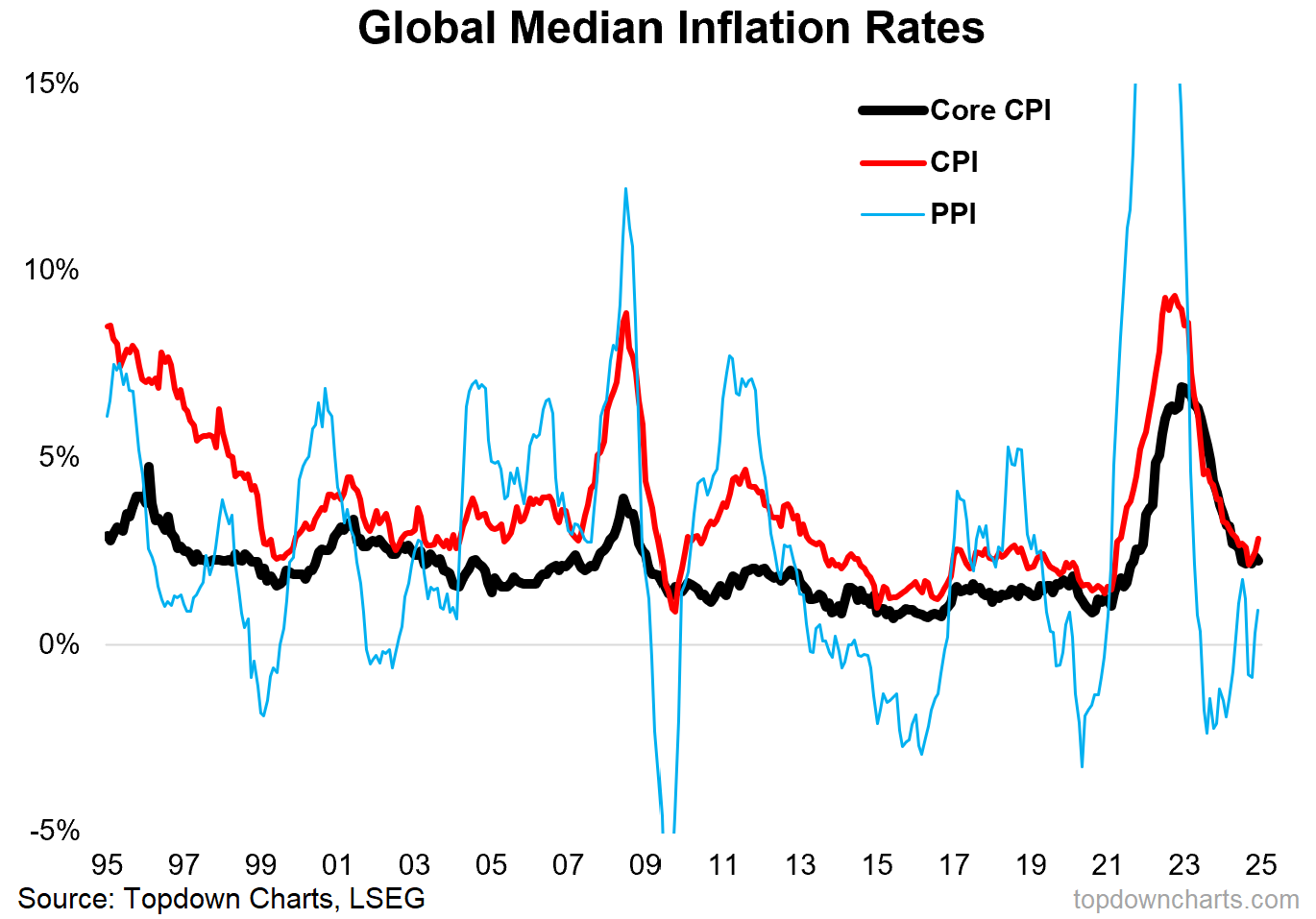 We need to remember commodities in this context — even if you don’t or won’t invest in them because a surge in commodity prices is going to present upside risk to inflation (remember inflation? —p.s. see bonus chart below on inflation)