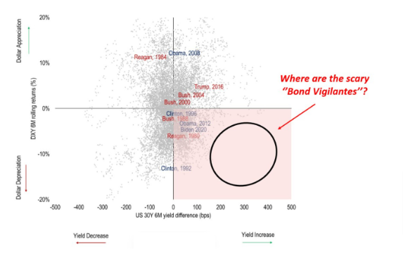 Les justiciers obligataires sont véritablement en action lorsqu’ils déclenchent une liquidation des marchés obligataires pour imposer une certaine discipline aux décideurs politiques, et ils génèrent ainsi un effet de contagion sur les marchés des changes et potentiellement sur les marchés boursiers.