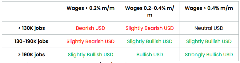 - NFP report expectations: +160K jobs, +0.3% m/m earnings, unemployment at 4.0%