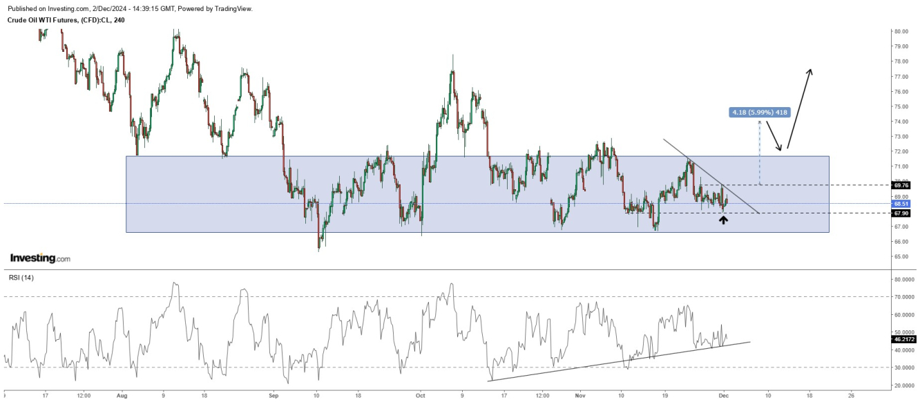 En el corto plazo mientras se mantenga la cotización arriba del área psicológica de los 67,9 dólares por barril, se podría contemplar un escenario alcista para el petróleo WTI cuyo objetivo se ubica en el área de los 78.2 dólares por barril. Por otra parte, si esta área no llega a ser respetada se considera que la acumulación se podría mantener por 4 semanas consecutivas, usando como resistencia y soporte macro las áreas anteriormente mencionadas.