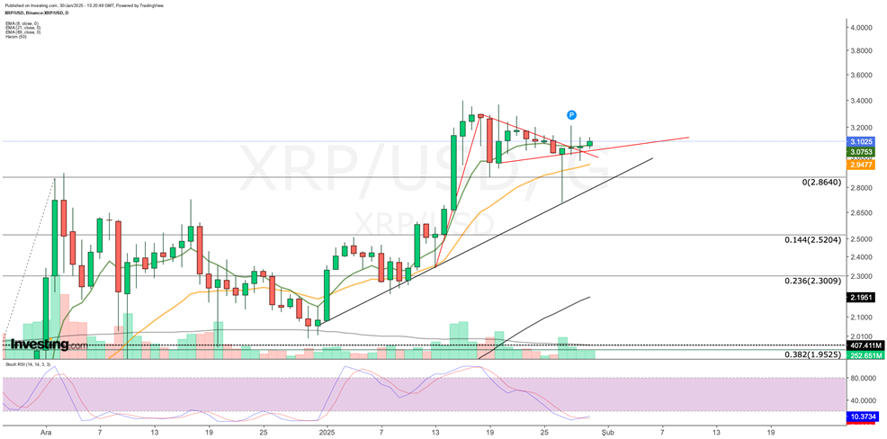 Ethereum has seen significant consolidation around the $3,300 mark before its recent drop. A triangle formation on the daily chart pointed to an imminent breakout in either direction. After the negative impact of DeepSeek, ETH fell below $3,300, then broke $3,200 with strong volume. The decline continued to $3,000, hitting the Fibonacci 0.618 retracement level. However, aggressive buying from this support zone confirmed $3,000 as a strong demand level, much like the January 13th sell-off.
